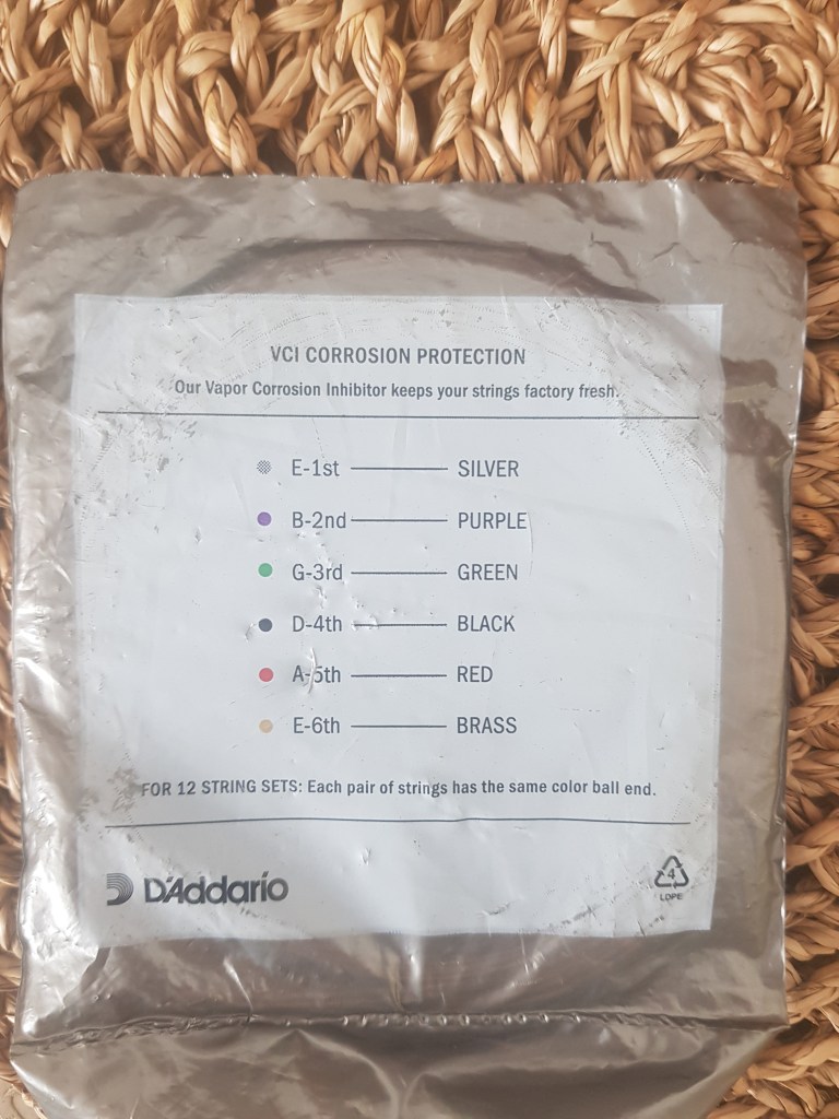 - Don’t just change one string. What a nightmare! Cheese wire cuttting your fingers, covered in skin-dirt and one odd shiny string. It does effect the sound. It looks lazy and cheap too. Buy a whole set from Amazon or wherever. I use D’Addario medium lights. Medium lights is honestly a good start of you don’t know what you’re doing. Thick and heavy is harder to play and too light break more easily. It’s for people who like that particular sound.