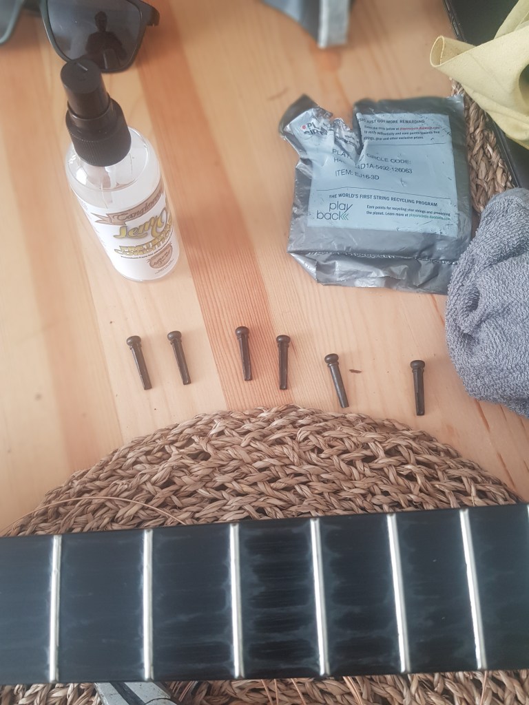 Now you’ve read this (presuming you have read this). Check out this guy representing a company on YouTube. This channel has hundreds and thousands of subscribers, a fancy workshop and lovely cameras. The more you do a practical task, the more you listen and watch other people doing it, the better you get at it. Until it becomes easy and in the end, satsifying. Plus, it’s only 5 minutes and it says what I’ve just said with some extra tips. Like using a dust peg for pushing the stiff pegs out from inside the guitar. Great tip. Go for it! Don’t slack off and get it over with.